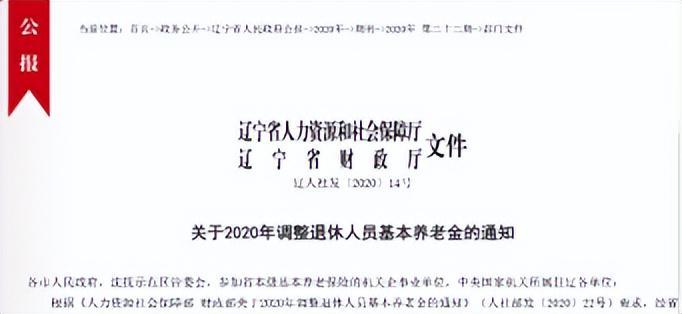 参考资料:辽人社发〔2020〕14号 关于2020年调整退休人员基本养老金的通知